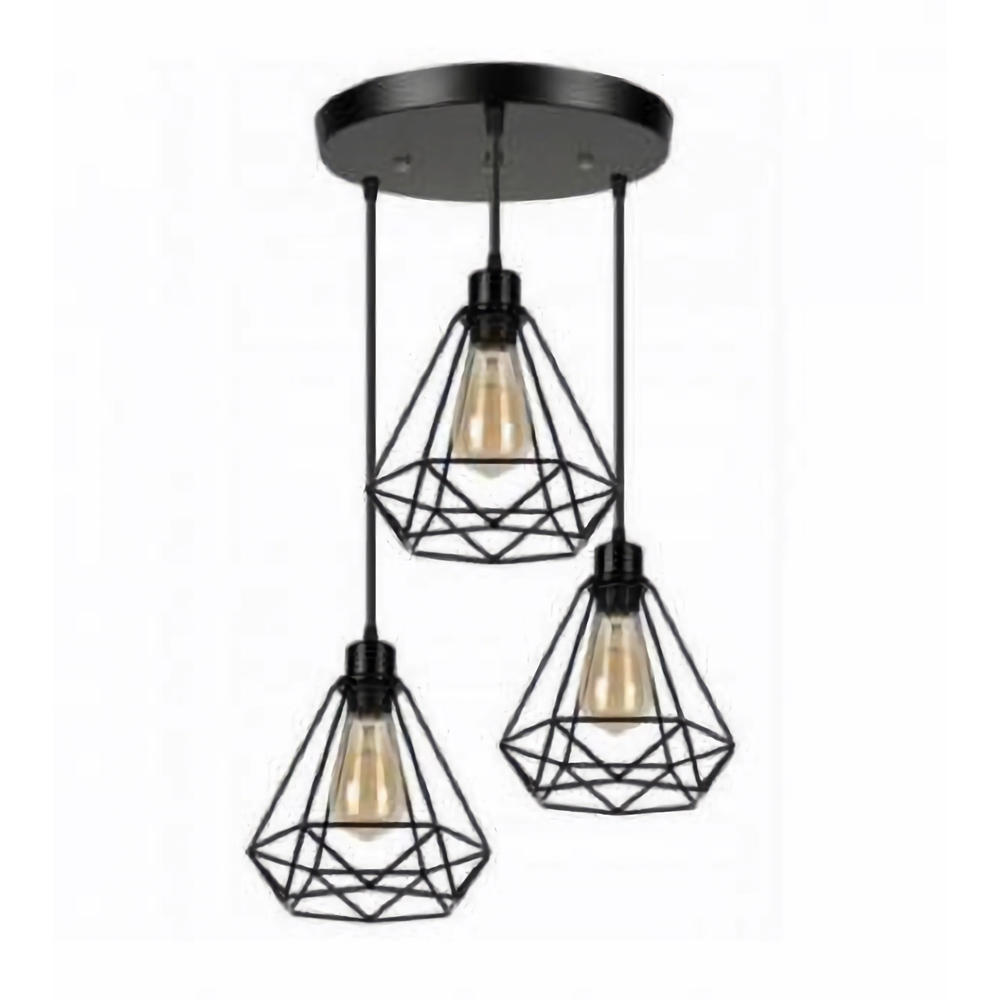 Lustra 3 pendule E27 suport rotund negru
